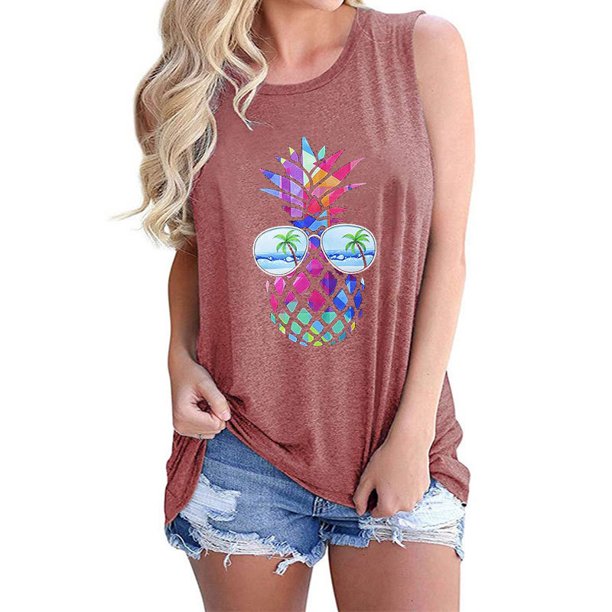 Landi New Women S Colorful Pineapple Sunglasses Beach Tank Tops Funny Graphic Vest Casual Sleeveless Tee Shirts Walmart Com Walmart Com