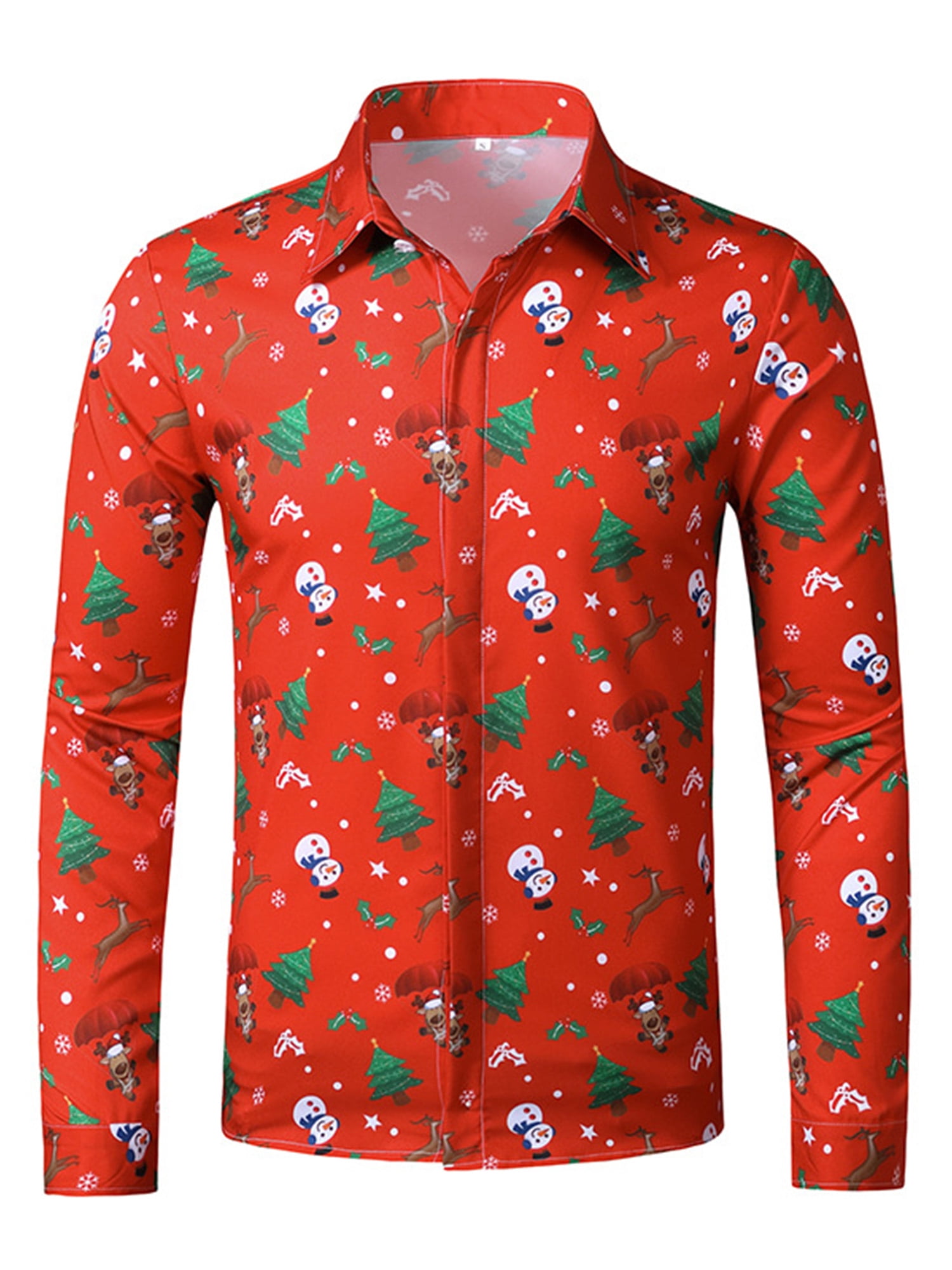 Christmas Dress Shirt Printed Long Sleeve Turndown Collar Button Down Blouse Xmas Tree Deer Tops For Men Walmart Com